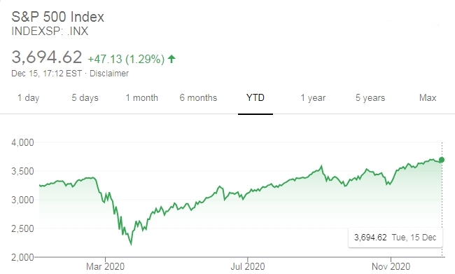 Tuy nhiên, cả Wall Street và vàng sau đó có màn lội ngược dòng ngoạn mục. Wall Street chỉ mất 5 tháng để đi từ đáy lên đỉnh mới, xác lập thị trường giá xuống ngắn nhất lịch sử chứng khoán Mỹ. Thị trường đi lên nhờ nhiều nguyên nhân, từ cổ phiếu công nghệ được chuộng trong đại dịch, tác động của gói kích thích kỷ lục, dự báo Joe Biden đắc cử đến kỳ vọng vào vaccine Covid-19.